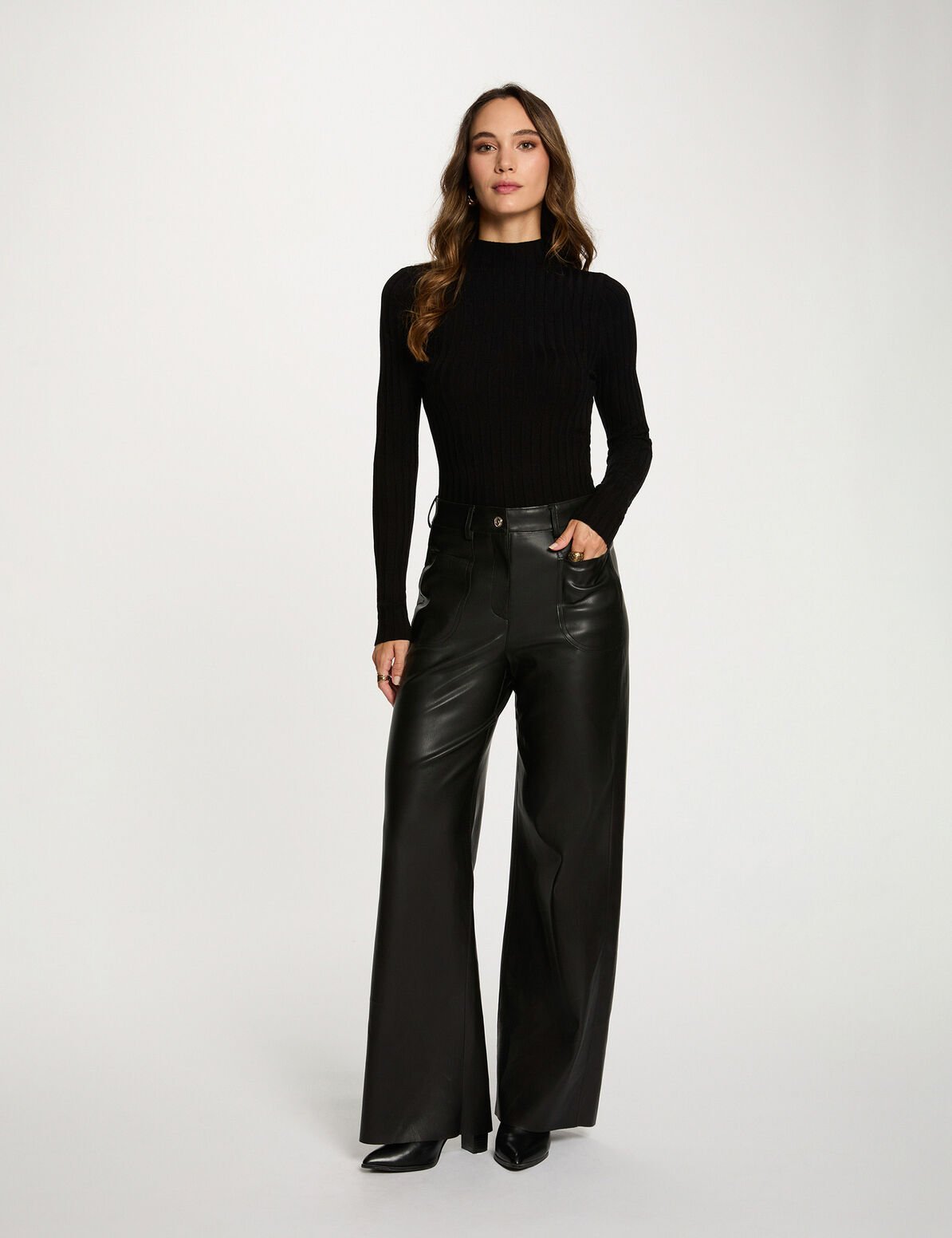 Pantalón ancho efecto piel de tiro alto negro morgan