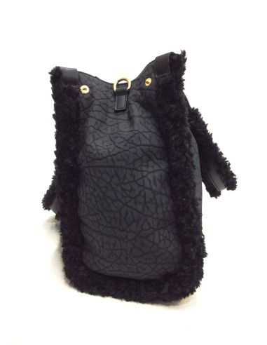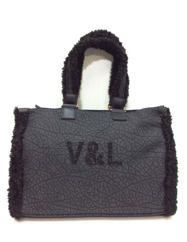 Bolso shopper bandolera para mujer Victorio&Lucchino Aura negro, en piel sintética blandita con detalles de borreguillo. Con asas cortas y bandolera larga, elegante y versátil.