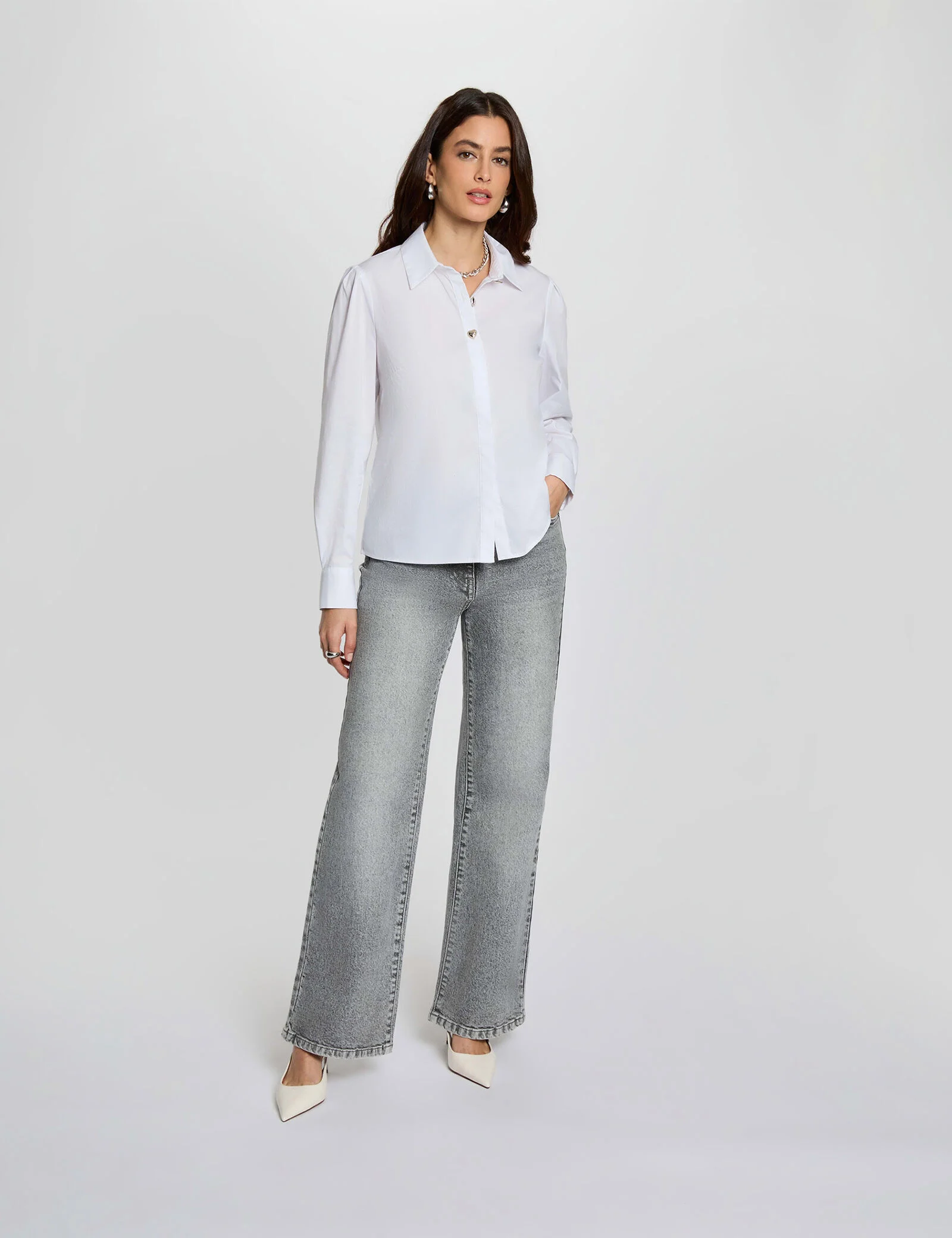 - Esta camisa recta encarna la elegancia moderna con su cuello con solapa estructurado. Los botones refinados destacan sutilmente el estilo working girl, perfecto para un armario sofisticado. Su corte recto se adapta armoniosamente a todas las morfologías, ofreciendo un aire femenino y seguro.