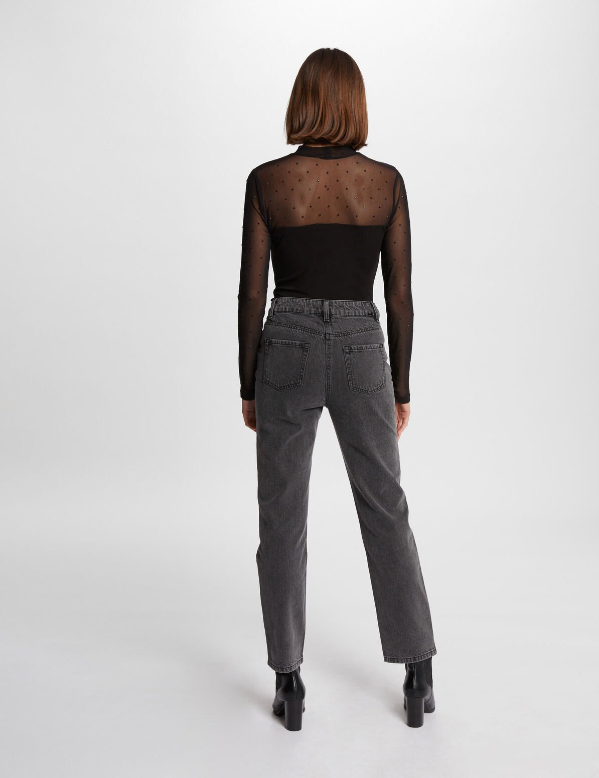 Detalles strass en el cuello, los hombros, las mangas y en la espalda