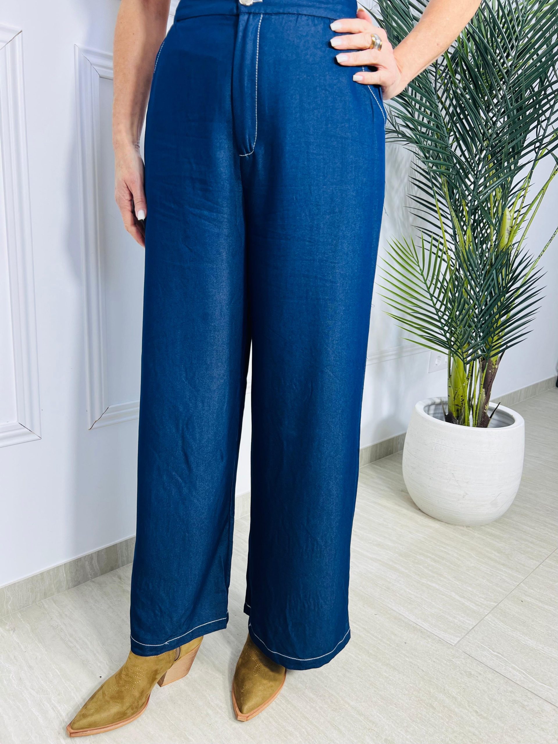 Descubre la versatilidad definitiva con nuestro Set Denim Deluxe, un conjunto de dos piezas diseñado para estilizar y destacar. Confeccionado en un tejido con acabado denim oscuro y pespuntes en contraste, este conjunto ofrece un look pulido y moderno sin esfuerzo.