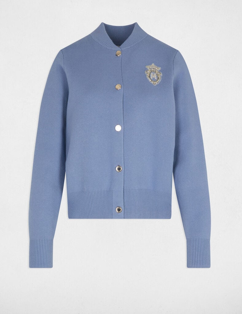 Este jersey corto ajustado realza las formas con elegancia gracias a su corte ceñido al cuerpo. Su cuello teddy estructurado y moderno aporta un estilo a la moda, mientras que los bordados delicados añaden un toque refinado y femenino. Los botones colocados sutilmente completan este tejido chic casual.