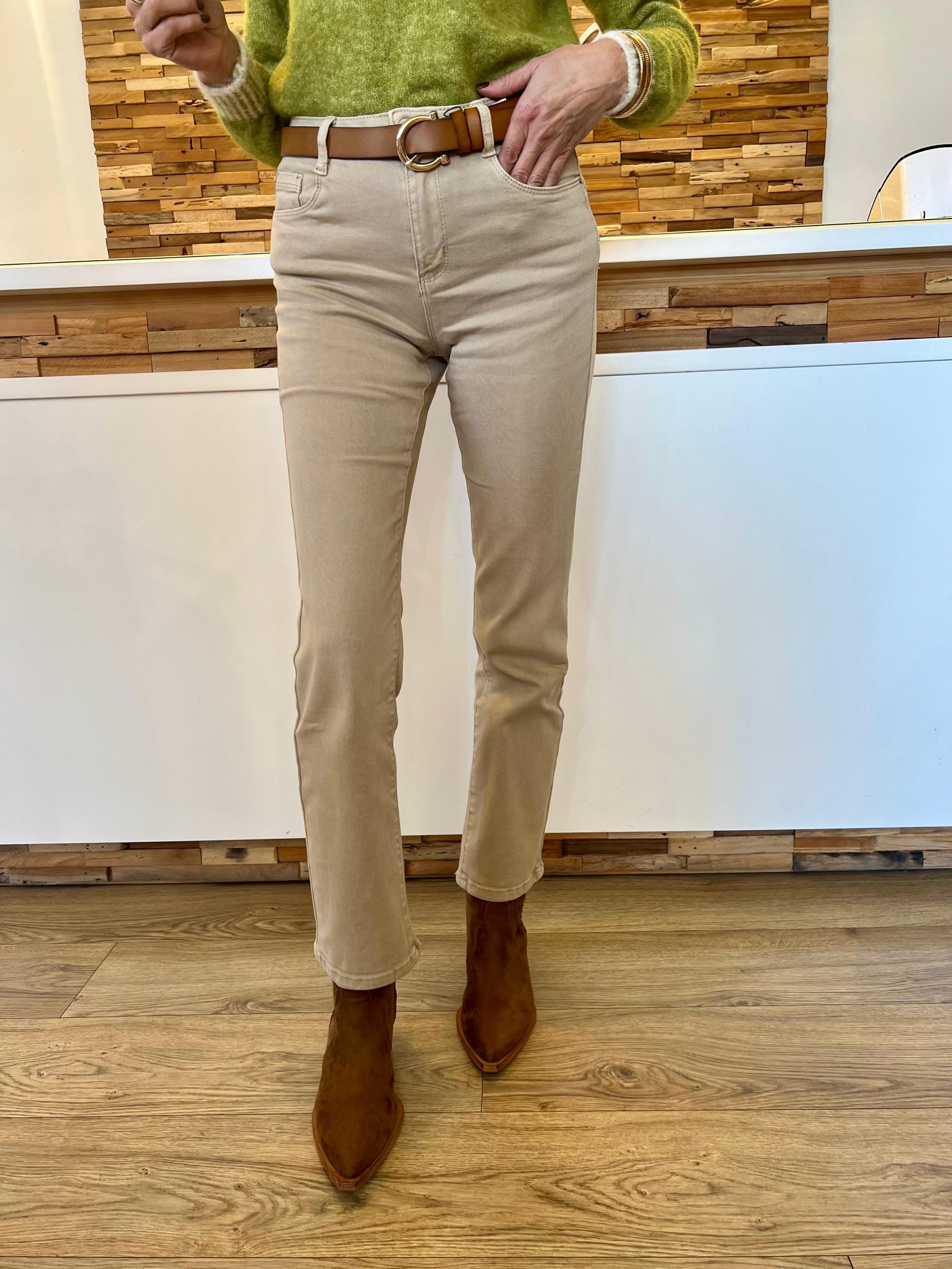 Cuenta con cinco bolsillos funcionales y un acabado en color camel, un tono versátil y diferente que eleva cualquier look. Ideal para combinar tanto con prendas básicas como con estilos más sofisticados, es una pieza imprescindible para crear outfits actuales y con personalidad.