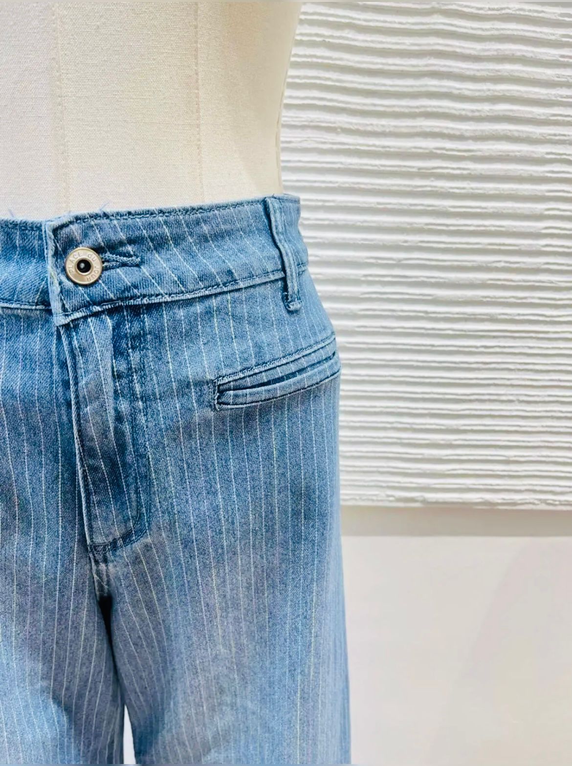 Pantalón Denim Wide Leg de Rayas – Estilo Retro-Chic