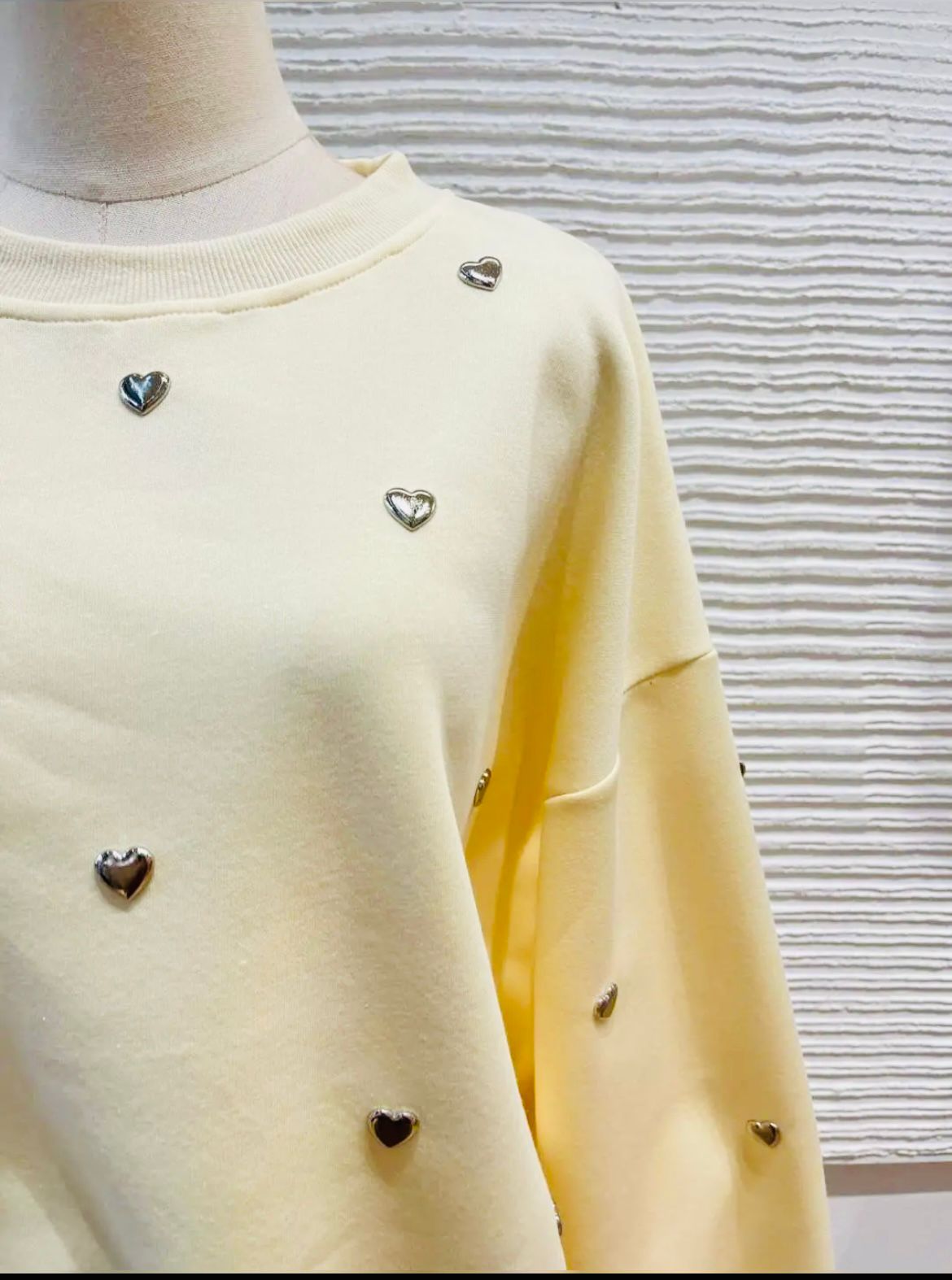 Añade un toque de dulzura y brillo a tu armario casual con nuestra sudadera de cuello redondo en tono crema. Decorada con delicadas aplicaciones de corazones metalizados, esta prenda es la combinación perfecta entre la comodidad deportiva y un estilo femenino irresistible.